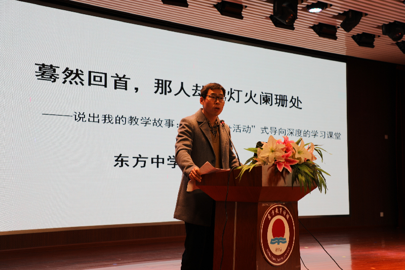 物理老师栾翠星演讲的题目是“蓦然回首,那人却在灯火阑珊处——说出我的教学故事:‘问题链+活动’式导向深度的学习课堂”。作为新进老师,栾老师和大家分享了自己入东方半年的内心感受,他对学校领导、班主任、老师和学生做了真情描述,正反映出学校“养正务本”的“绿色教育”理念。栾老师“问题链+活动”的教学模式做到了“前瞻性”“层次性”和“开放性”,给大家带了经验分享。
