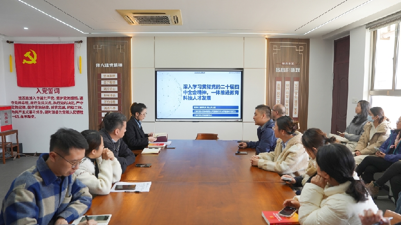 活动特邀上海社会科学院政治与公共管理研究所公共管理研究室主任、副研究员薛泽林博士作专题党课。薛博士以《深入学习贯彻党的二十届四中全会精神——一体推进教育科技人才事业发展》为题,从政治和全局的高度,结合教育现状与生活实际,以生动的案例和深入浅出的语言,系统阐释了党的二十届四中全会精神的深刻内涵与战略部署。讲座站位高远、内容翔实,既有理论高度,又贴近工作实际,引导全体党员深刻把握教育、科技、人才一体推进的发展大势,进一步筑牢“为党育人、为国育才”的政治自觉,增强了服务国家发展大局的使命感和责任感。