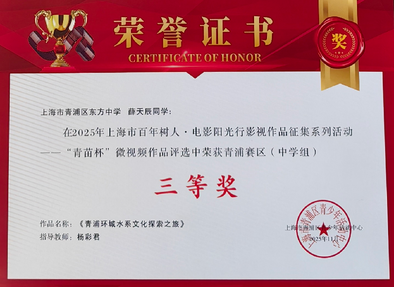 2025年上海市“青苗杯”微视频作品评选青浦赛区(中学组)学生获奖