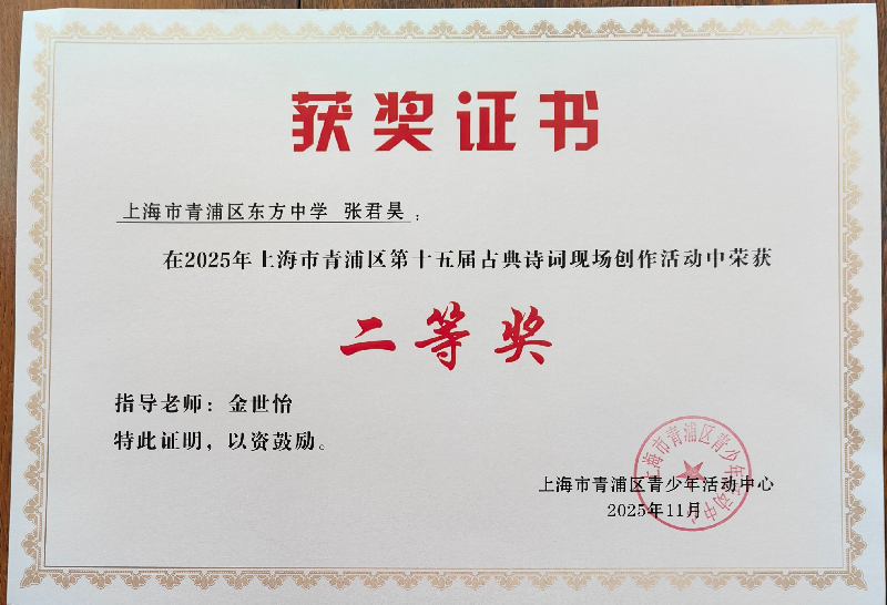 2025年上海市青浦区第十五届古典诗词现场创作活动学生获奖